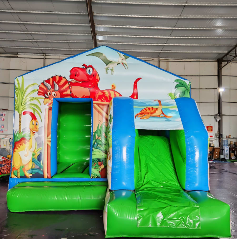 Our NEW DINO CASTLE is perfect for smaller kids and for smaller gardens. With a bouncy area and a slide at front of castle its sure to be lots of fun for all the DINOSOUR FANS. Suitable for boys and girls and comes with a rain cover so no worries if it rains.