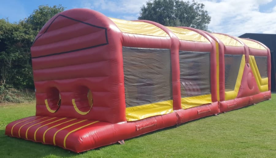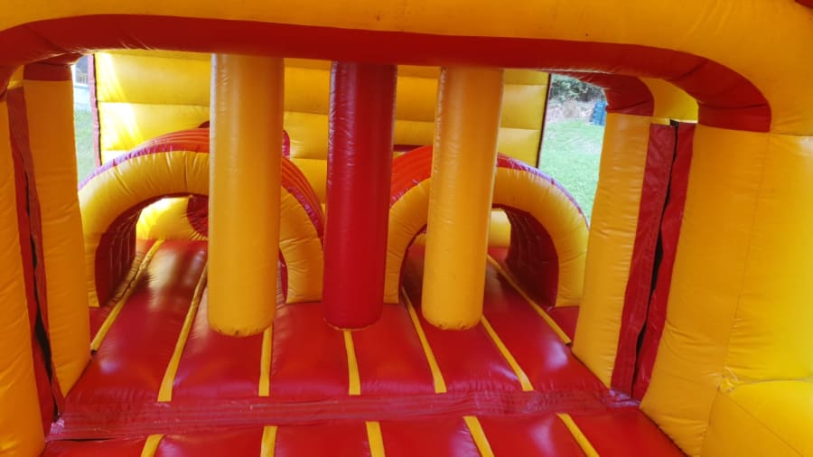 Our 40 ft covered obstacle course has lots of obstacles such as tunnels rock climbing wall bish and bash and a slide at end of obstacle course. Fun for all kids both boys and girls and is fully covered from start to finish. Has netting on both sides for easy supervision. Sure to be a big hit for your party.