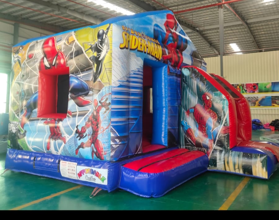 Our NEW SPIDERMAN CASTLE is perfect for smaller kids and for smaller gardens. With a bouncy area and a slide at front of castle its sure to be lots of fun for all the SPIDERMAN FANS. Suitable for boys and girls and comes with a rain cover so no worries if it rains.