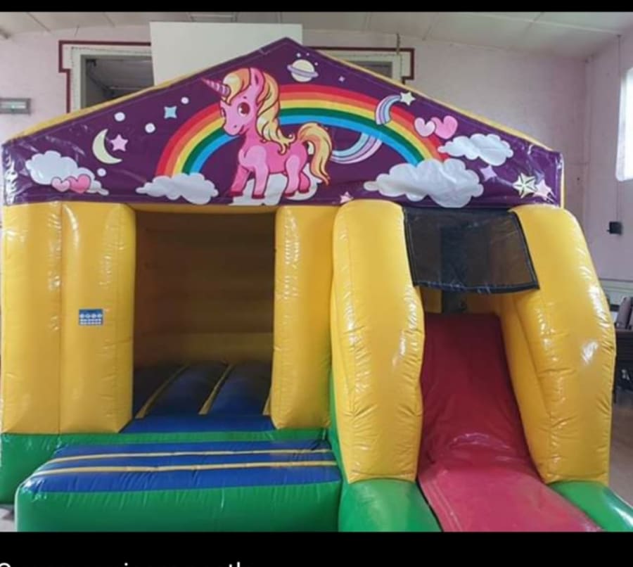 Our UNICORN BANNER CASTLE is perfect for smaller kids and for smaller gardens. With a bouncy area and a slide on the front of the castle sure to be lots of fun for all the UNICORN lovers. Suitable for both boys and girls and Comes with a rain cover so no worries if you get a shower.
