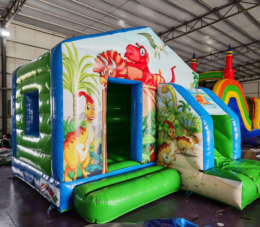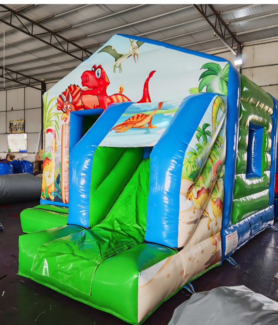 Our NEW DINO CASTLE is perfect for smaller kids and for smaller gardens. With a bouncy area and a slide at front of castle its sure to be lots of fun for all the DINOSOUR FANS. Suitable for boys and girls and comes with a rain cover so no worries if it rains.