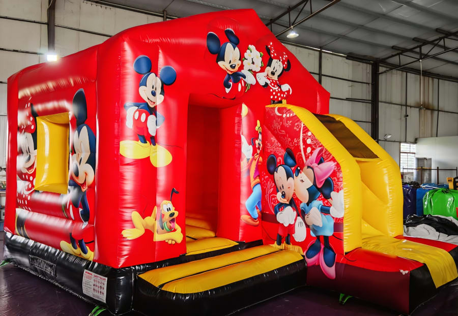 Our NEW MICKEY MOUSE CASTLE is perfect for smaller kids and for the smaller gardens. With a bouncy area and a slide at front of castle its sure to be lots of fun for all the DISNEY FANS' Suitable for boys and girls and comes with a rain cover so no worries if it rains.