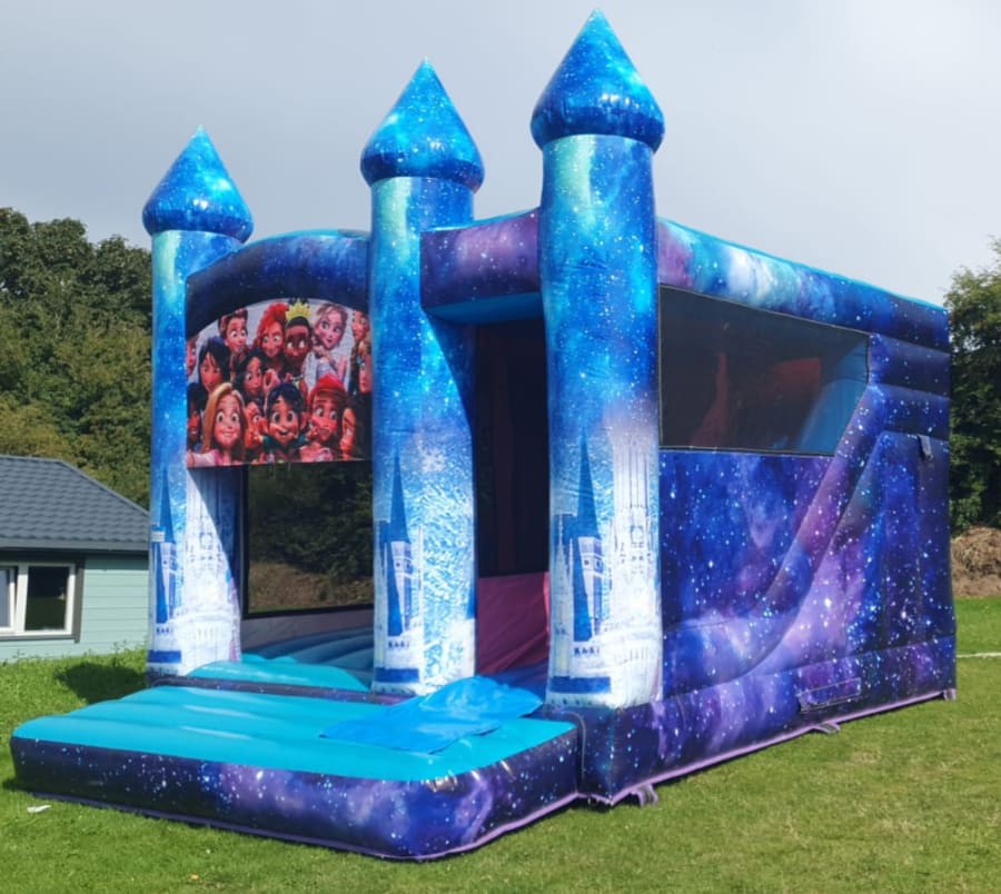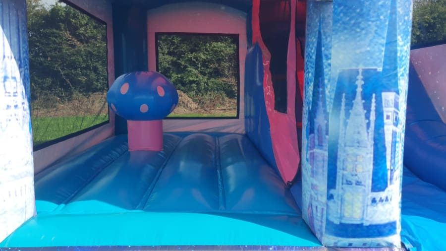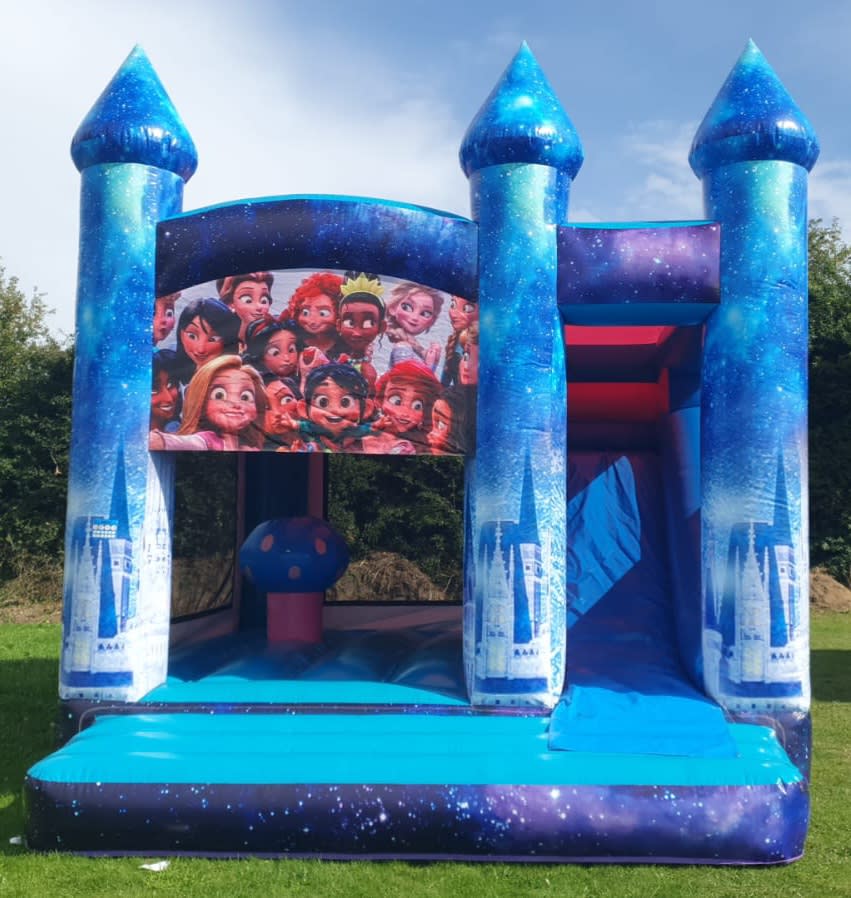OUR NEW DISNEY PRINCESS CASTLES is one of our very own design s and is sure to be a hit with all the princess s out there. Suitable for girls but so cool boys will love it too from the large bouncy area with bish and bash in a pop up mushroom to a slide inside the castle. Digitally printed for that WOW FACTOR with all your favourite DISNEY PRINCESS S on top of front of castle.