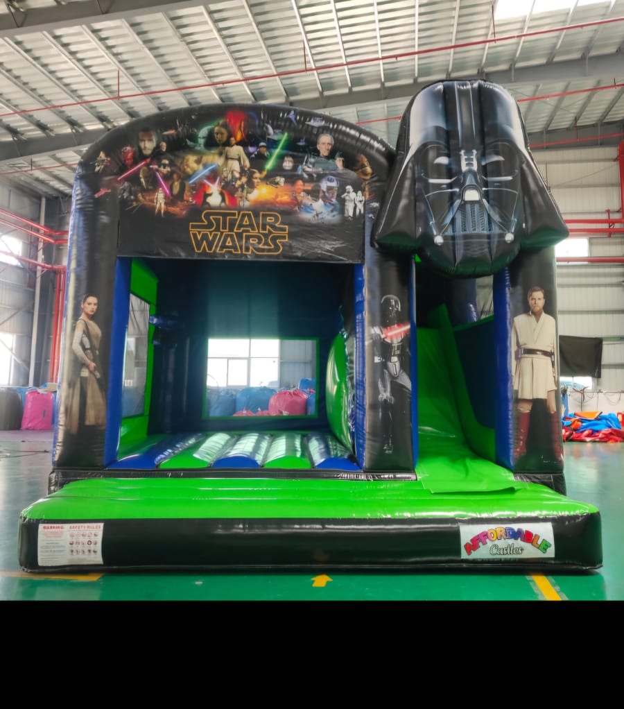 Our STAR WARS CASTLE certainly has THE WOW FACTOR for any party, Digitally printed artwork to a large monkey on top of front of castle and a large bounce area where u go up and over and is sure to be lots of fun for all boys and girls. fully covered in case it rains too..