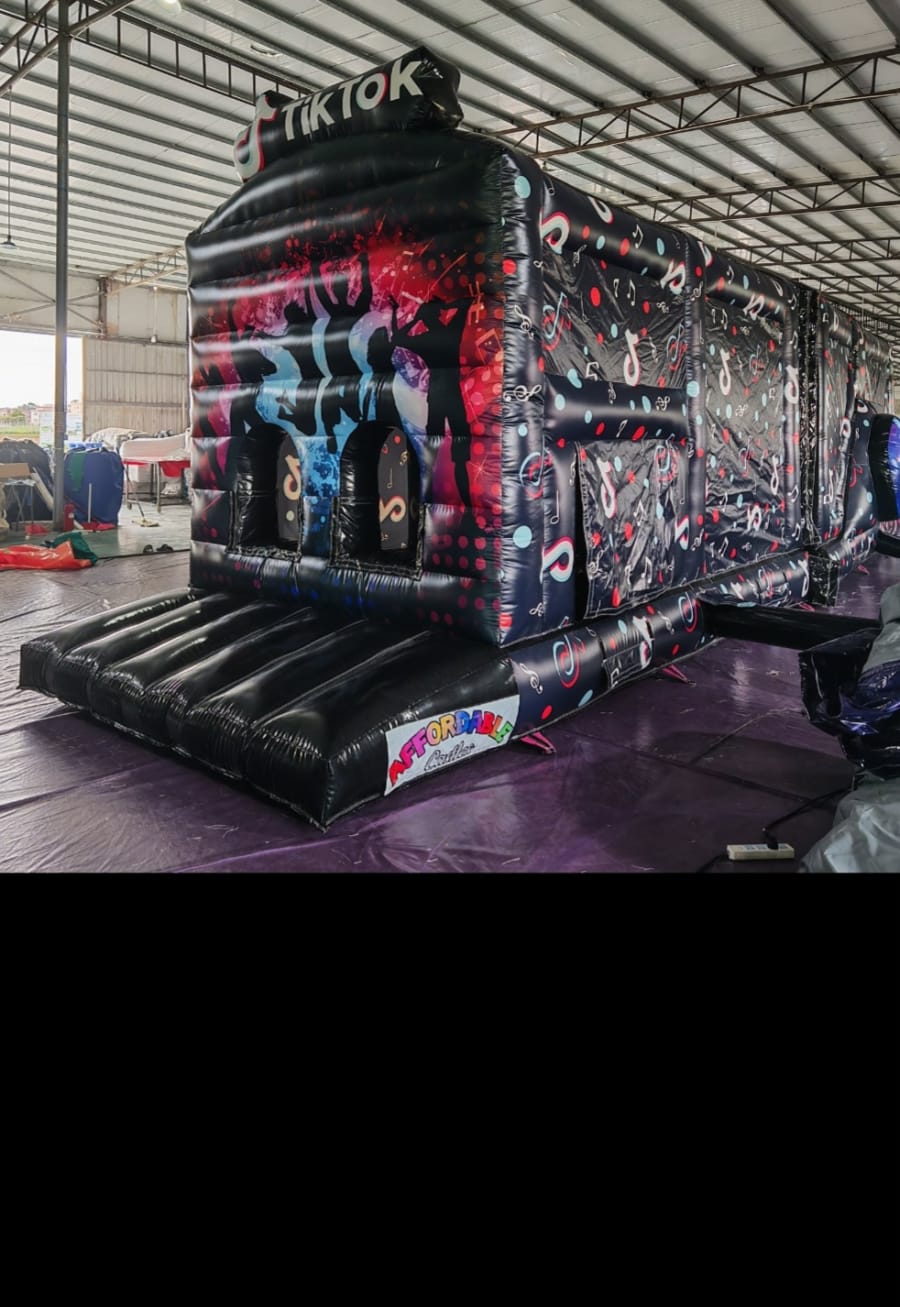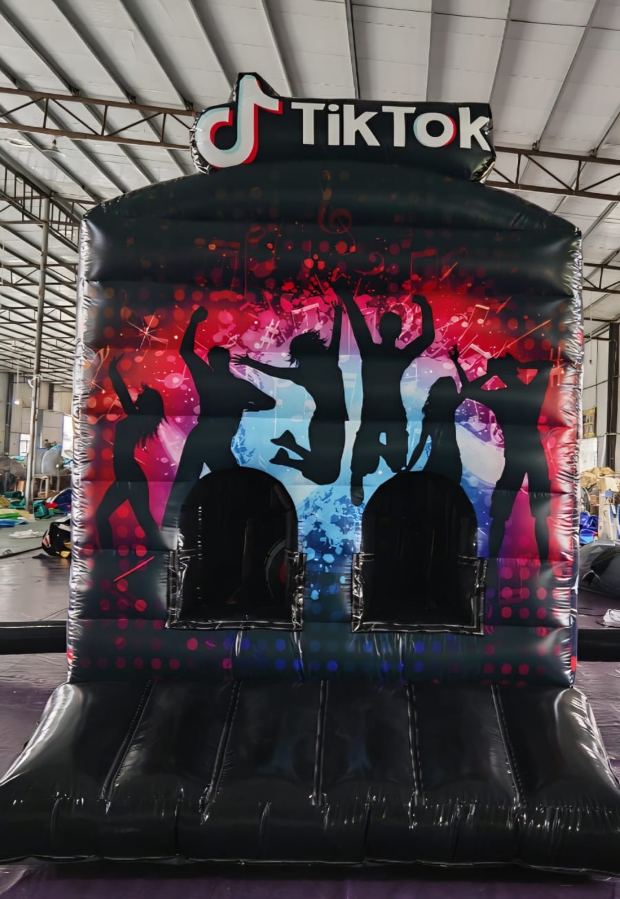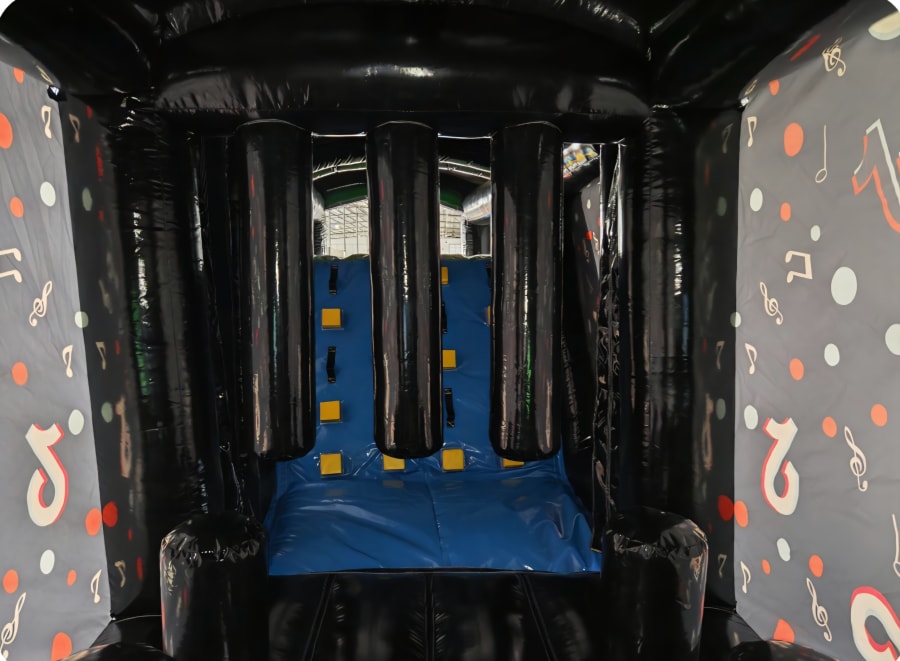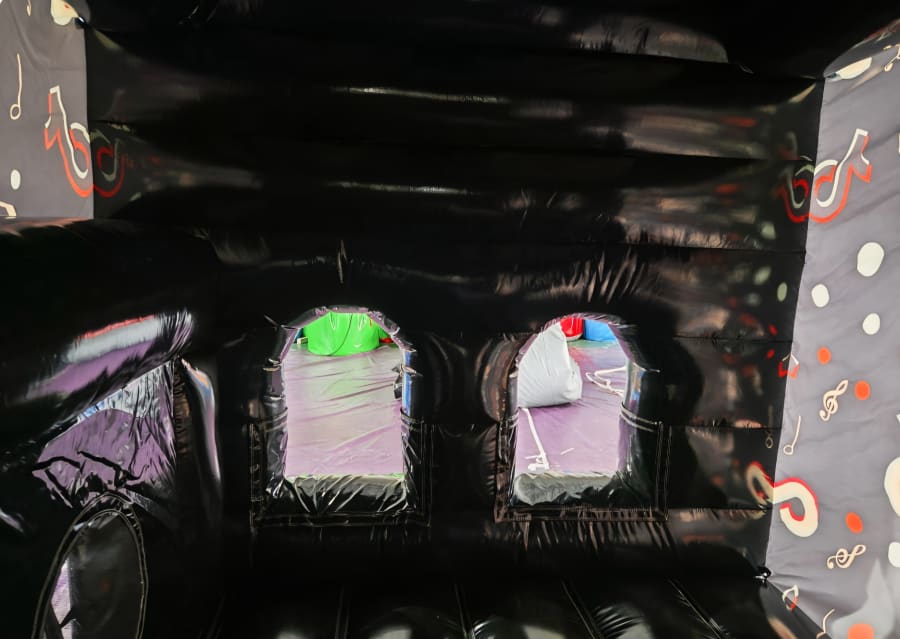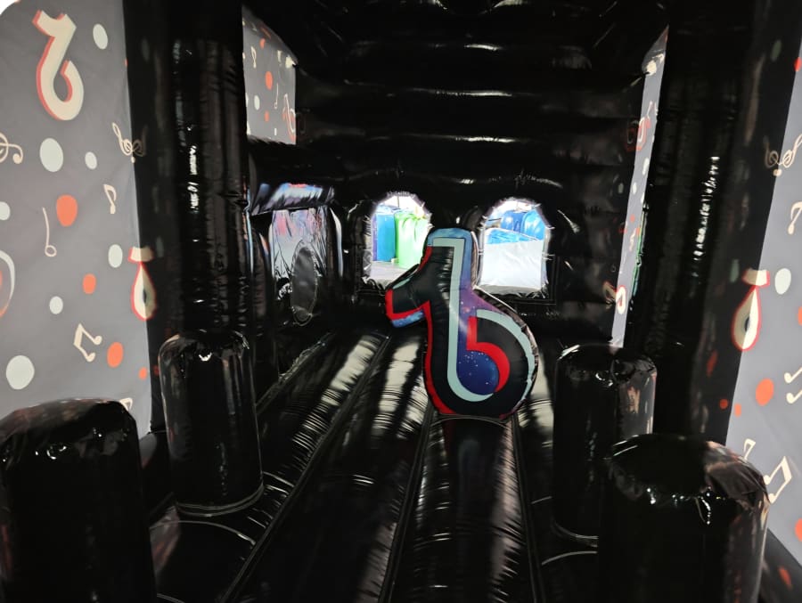 The large obstacle course has a large disco area with disco lights and sound system. Just BLUETOOTH your phone to the speaker and play any music on ur phone and bounce away on the large bouncy dancefloor. It also has a rock climbing wall and a slide for lots of fun. Suitable for boys and girls of all ages and will make any party one to remember/ CONTAINS STROBE LIGHTING.