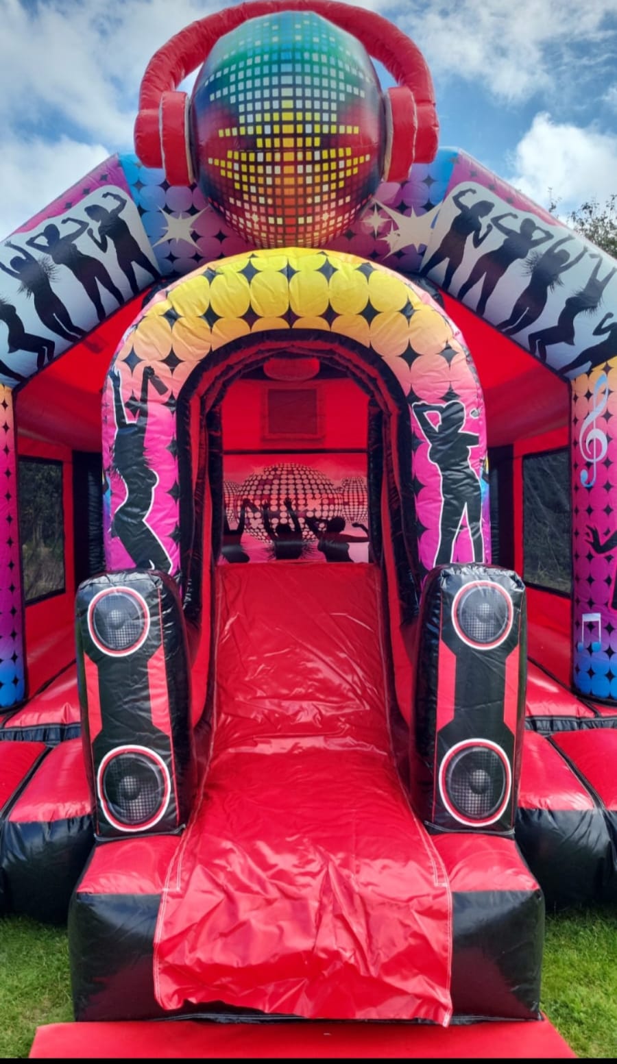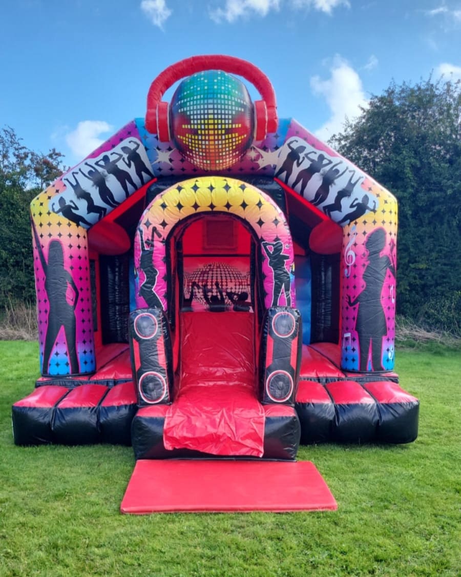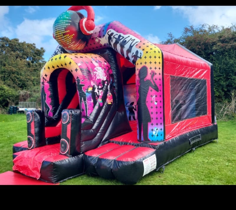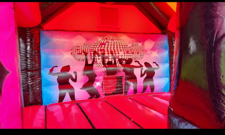 Large bouncy dancefloor so plenty of fun for both boys and girls. Fully covered so rain s no problem.