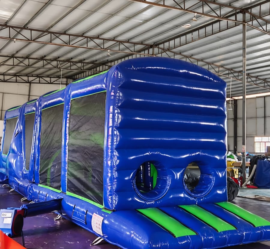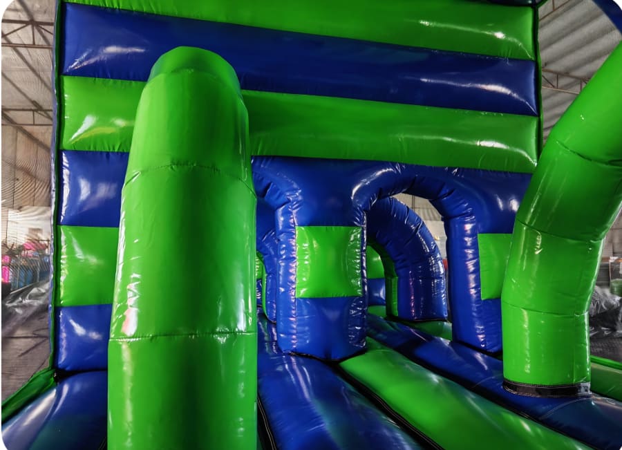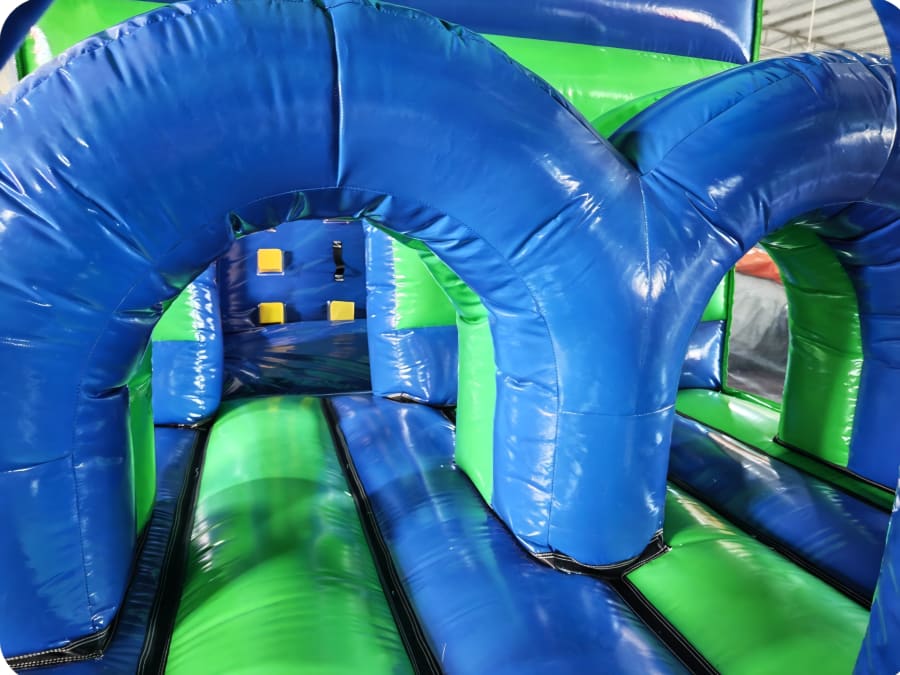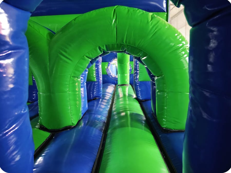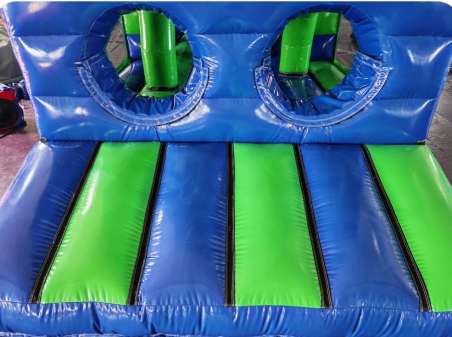 Our 40 FT NEW BLUE/GREEN OB COURSE has lots of obstacles such as tunnels rock climbing wall bish and bash and a slide at end of obstacle course. Fun for all kids both boys and girls and is fully covered from start to finish. Has netting on both sides for easy supervision. Sure to be a big hit for your party.