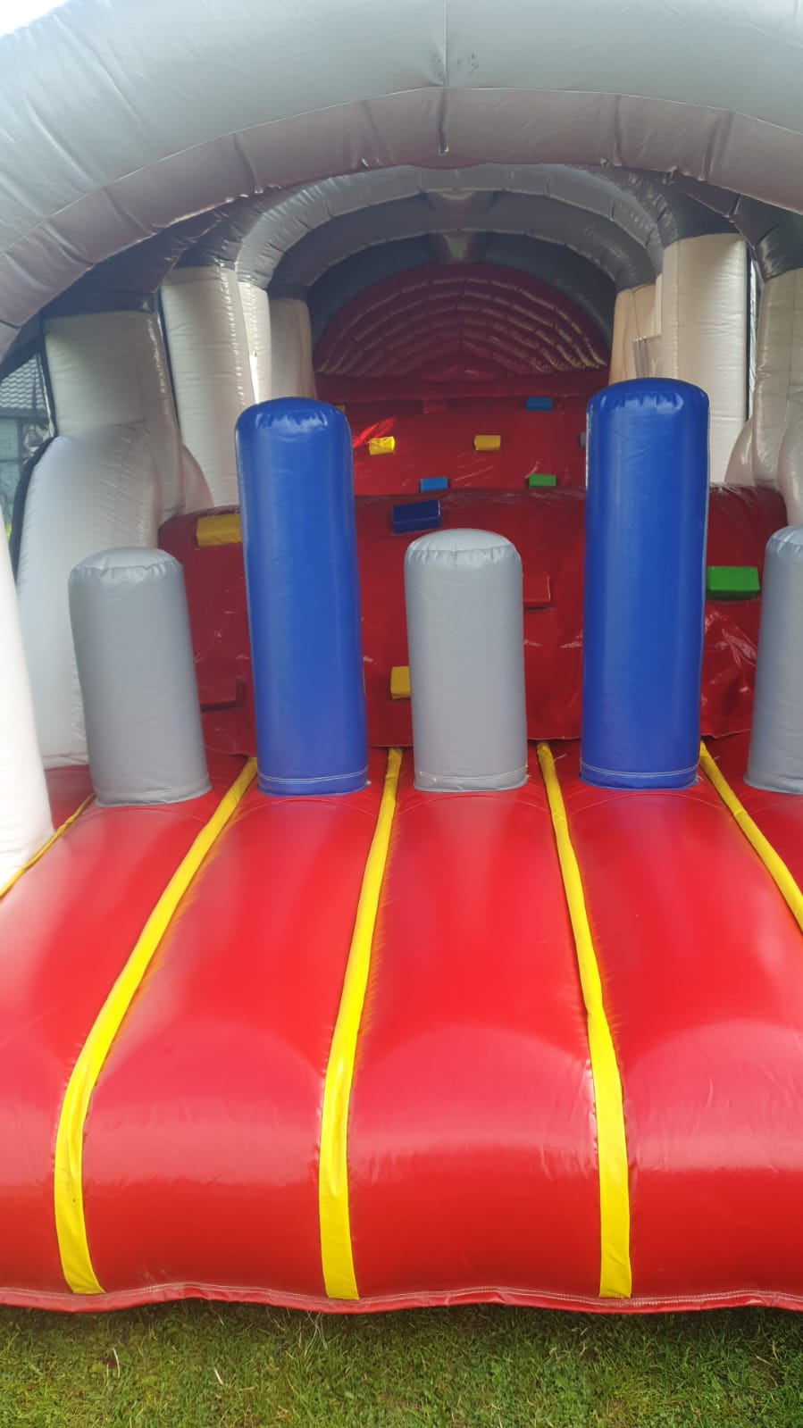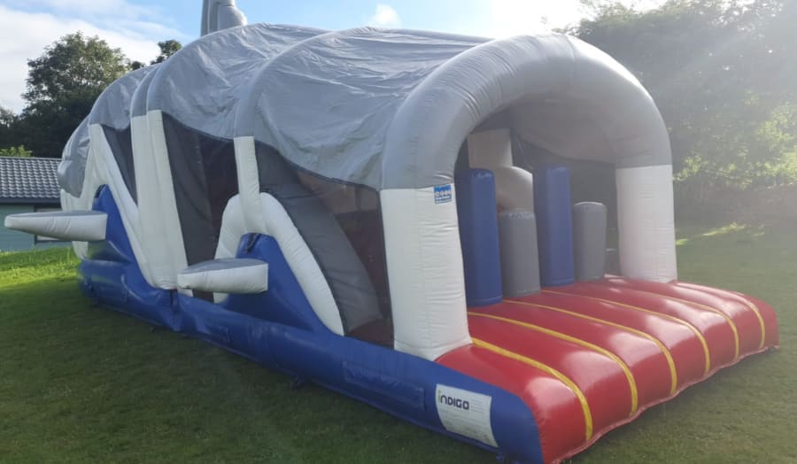 Our 36 ft Shark Obstacle Course is perfect for those smaller gardens and is great fun for both boys and girls. Baby shark comes to mind but dont be fooled just stand back and see how big it is. The fun starts as soon as u enter from the back to the bish and bash to bouncy area to climbing wall and finally down the slide and out its mouth. Fully covered so no worries if it rains. netting on both sides foe ease of supervision.