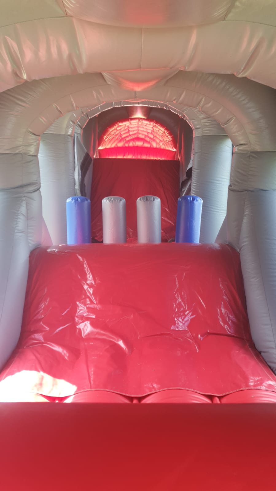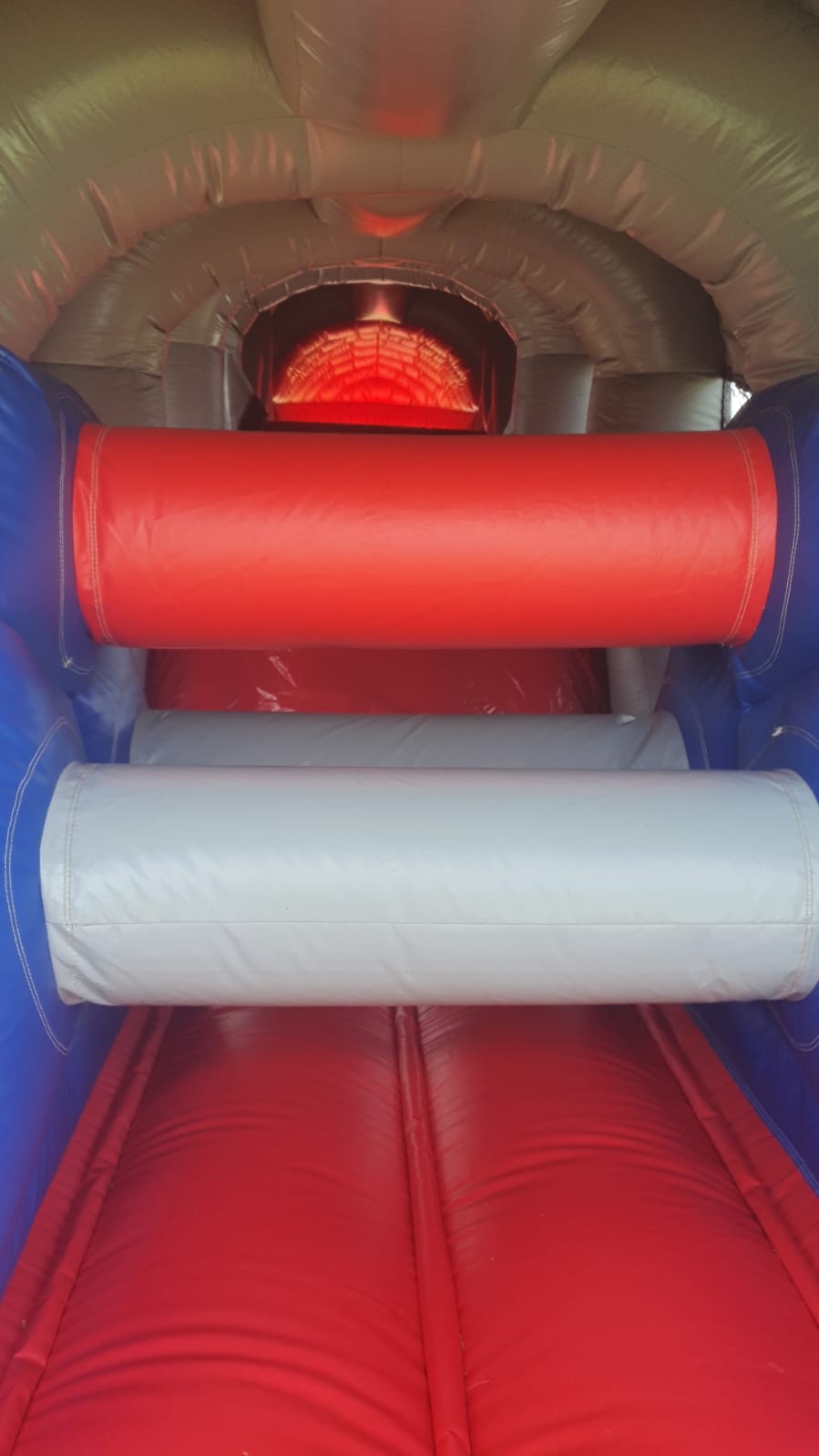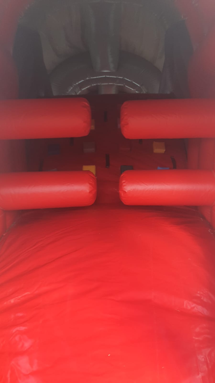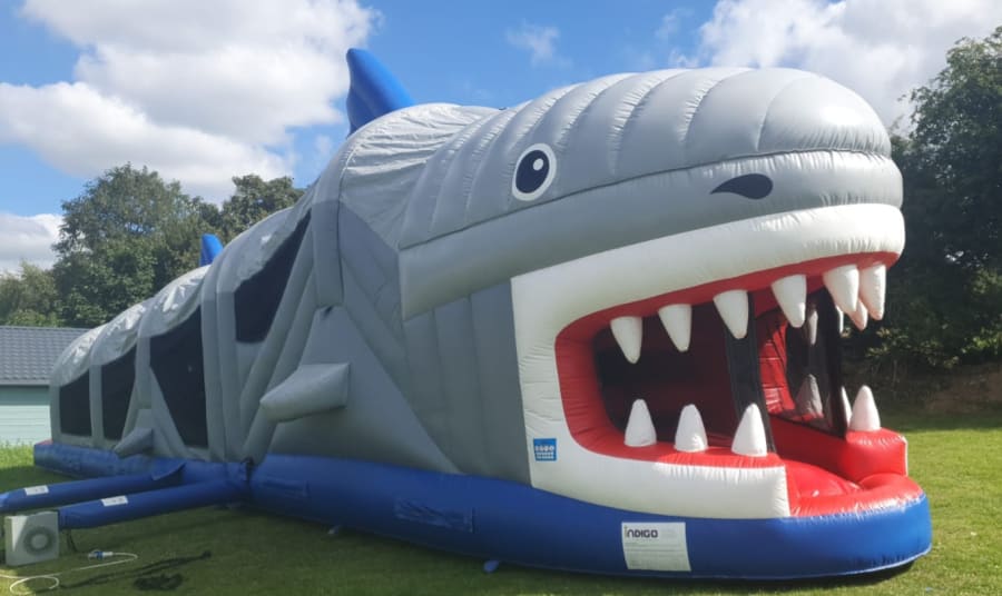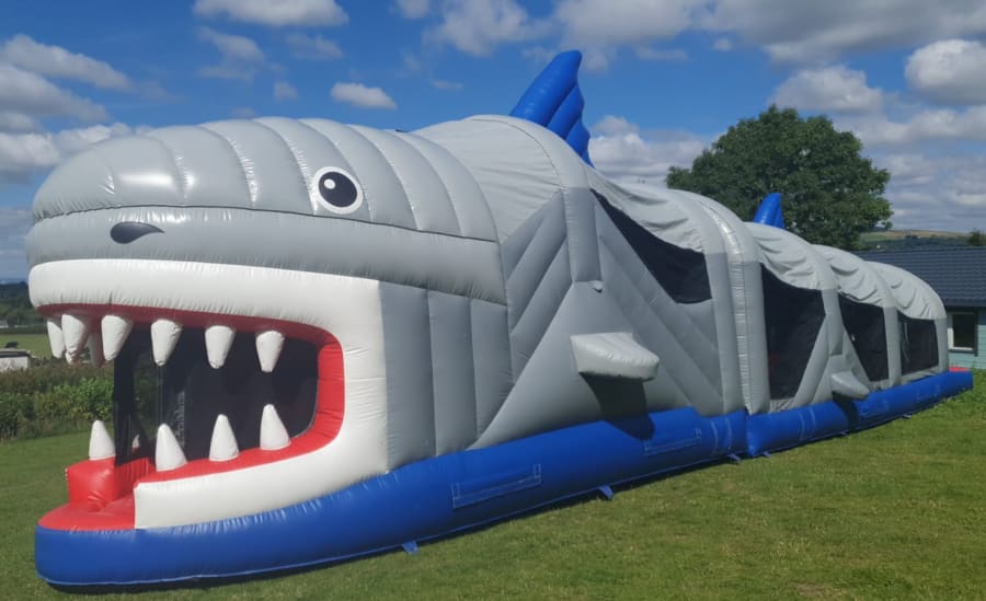 Our NEW 52 FT SHARK OBSTACLE COURSE is very impressive and is even better than previous SHARK. Suitable and loved by both boys and girls this SHARK will be the highlight of any party or event. From the start you enter through its mouth and up the rock climbing wall and down the slide to all the obstacles with bish and bash and up mini rock climbing wall and down mini slide and more bigger bish and bash all while your fully covered in case of rain and finally come out back of SHARK. Netting on both sides of obstacle course for easy supervision.