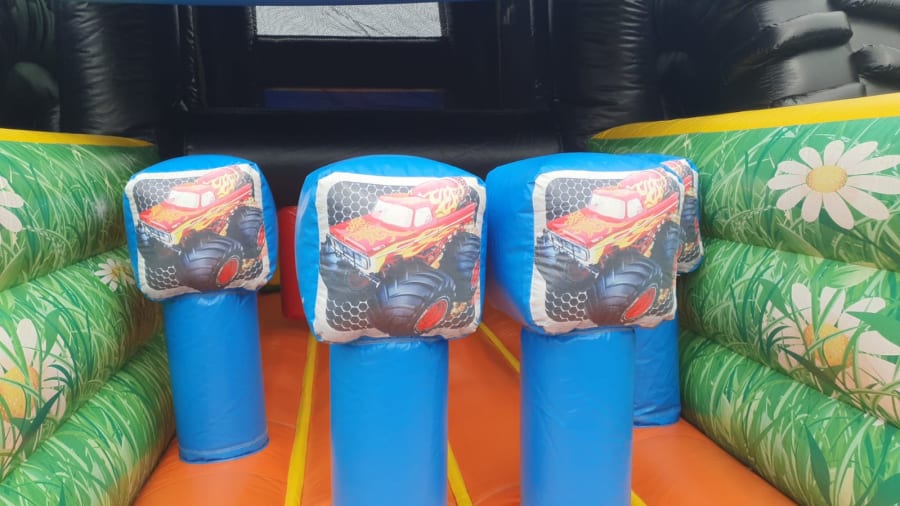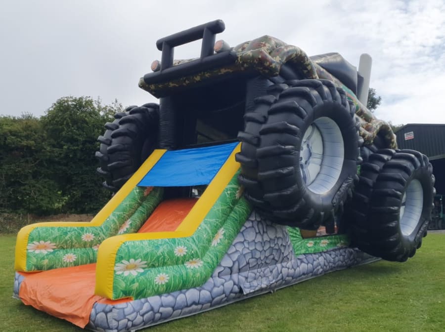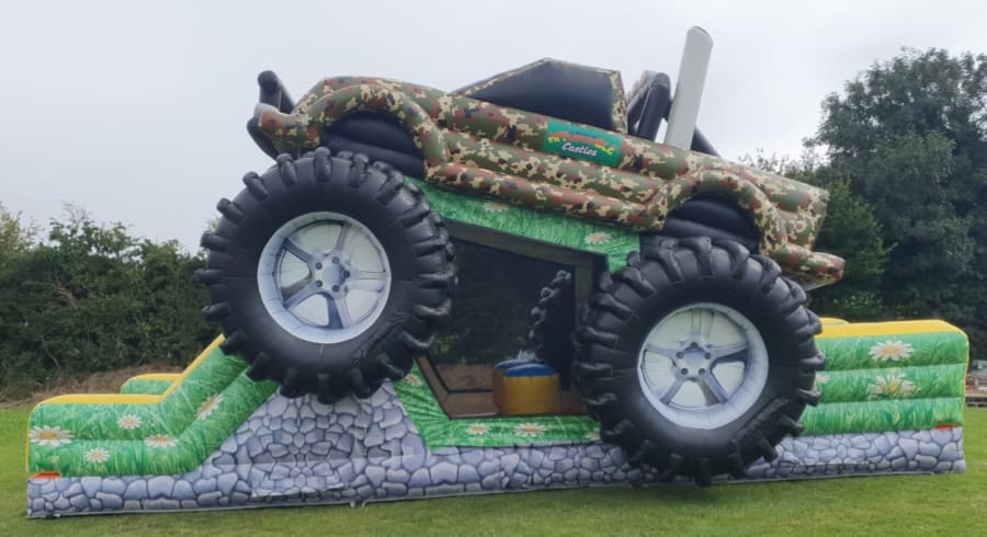 Our MASSIVE Army Truck Obstacle Course has the WOW factor and boasts 16 ft in height. Our very own design and the massive army truck sits on top of the obstacle course and slide. From all the obstacles as u enter obstacle course to the slide at end its sure to be a big hit for boys and girls of all ages. its partly covered so a rainy day is no problem . Has netting on both sides for ease of supervision.