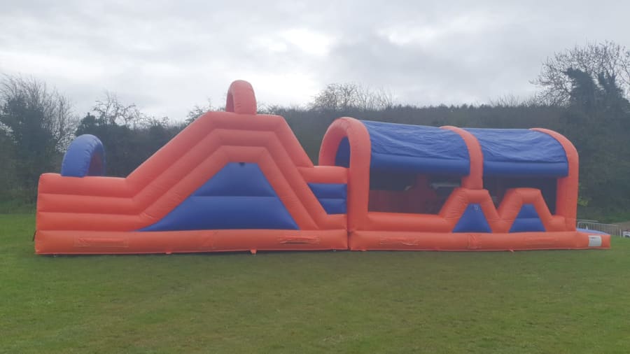 Check out our new 45 ft red and blue adrenaline booster obstacle course. Sure to be a big hit and suitable for both boys and girls. Loads of fun from when you enter obstacle course though entrance to series of bish and bash and pillars and over climbing wall and more tunnels and a high climbing wall and down the high slide. Has netting on both sides for easy supervision.