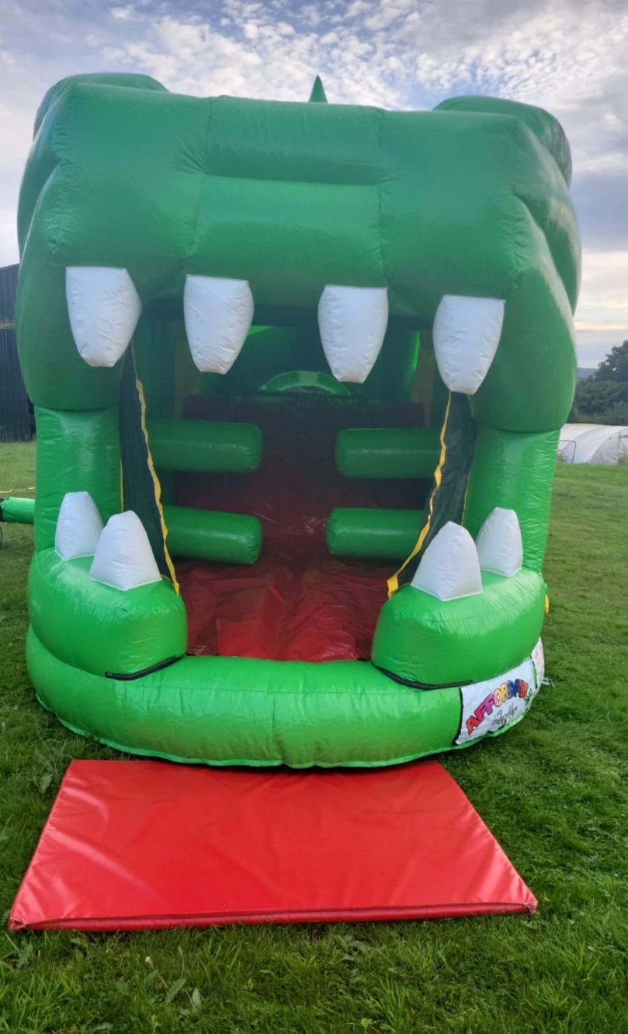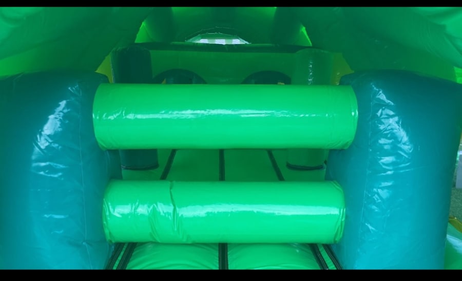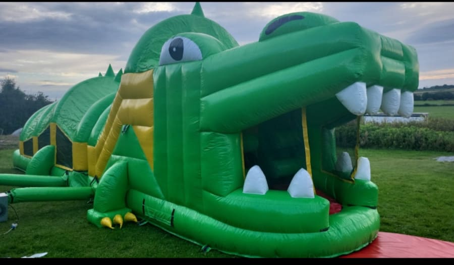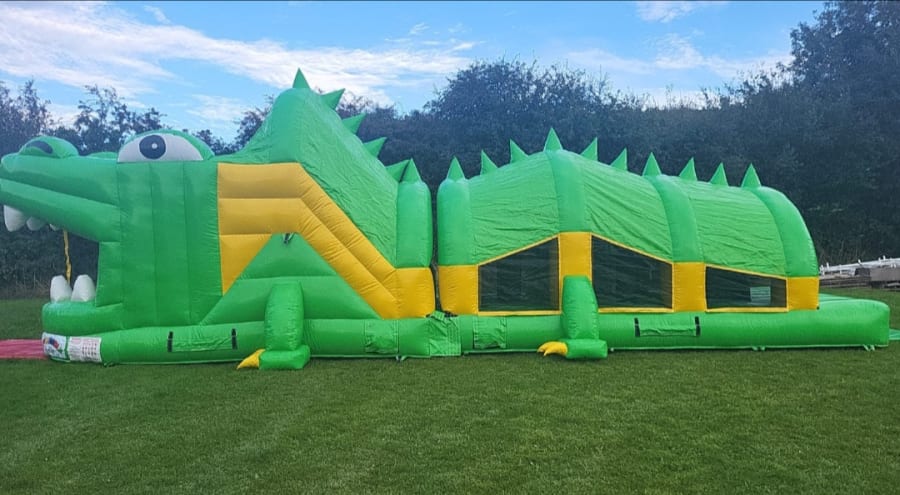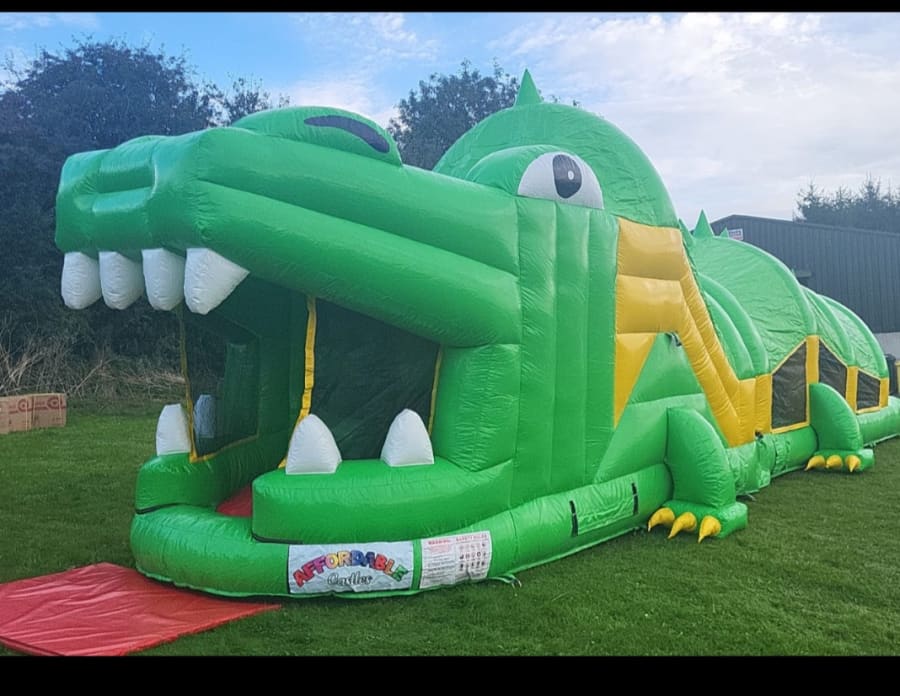Our NEW 36 FT CROCOLIDE OB COURSE is perfect for those smaller gardens and is sure to be a big hit for both boys and girls. Its fully covered from the time u enter obstacle course till you come out its mouth... The fun starts as u enter from the back and go through all he obstacles from Bish bash bouncy area a rock climbing wall and a slide at end of obstacle course. Safety netting on both sides for ease of supervision and suitable for kids of all ages.
