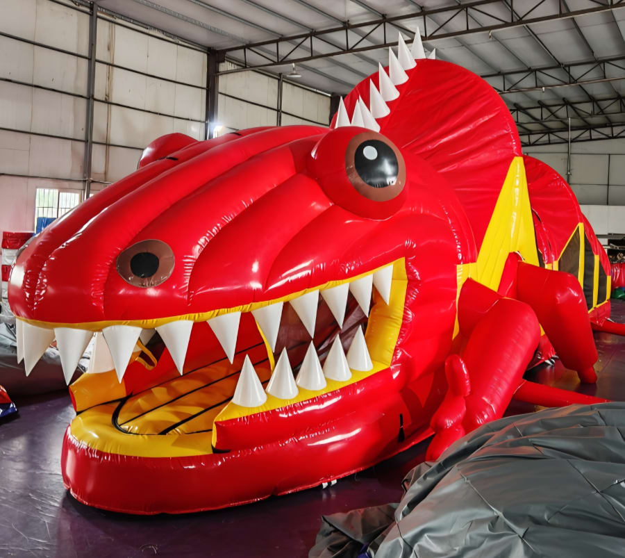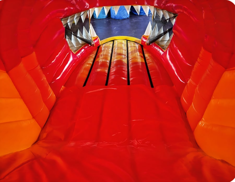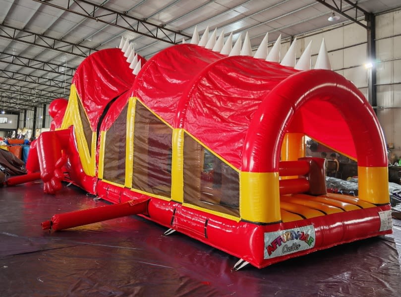 OUR NEW 53 FT RED LIZARD OB is sure to be a big hit with both boys and girls. It has that WOW factor and is fully covered in case of rain. From bish and bash to bouncy area to climbing wall and two slides this will be a hit at any party. Has netting on both sides for easy supervision.