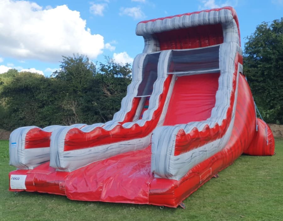 OUR NEW VOLCANO SUPER SLIDE has been designed by our own design team and WOW have they done some job. Standing at nearly 20 ft tall our VOLCANO SLIDE is sure to be loads of fun for both boys and girls and perfect for adult s too. A single lane slide with steps on one side and slide on the other slide with a large run off area at bottom of the slide. As the name suggests VOLCANO with colour s red lava and marble you will think your sliding down a volcano on this one.